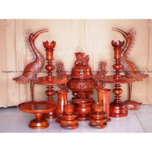 BỘ LY NƯỚC THỜ GỖ CẨM – MNLC01