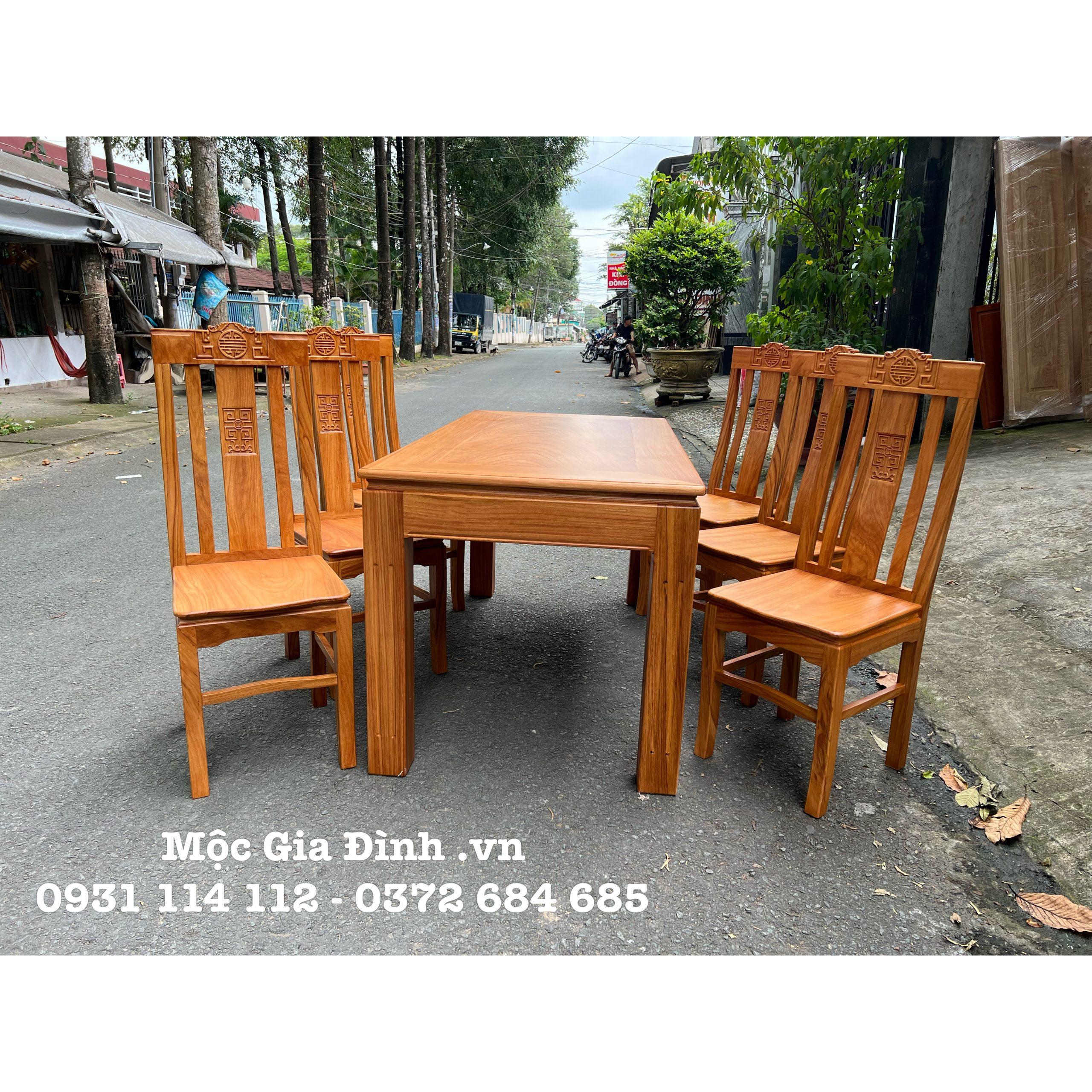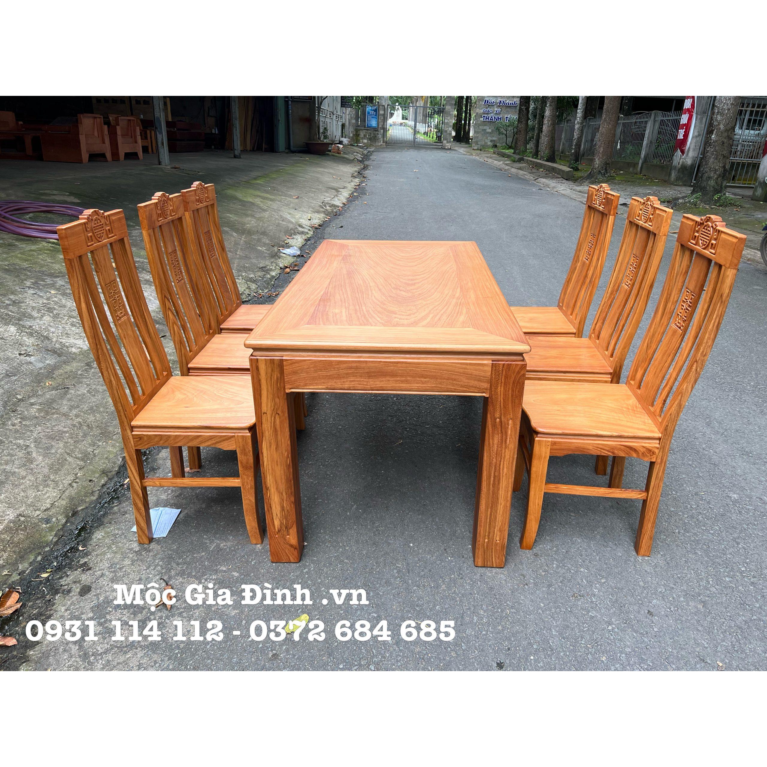 Trang chủ Bàn Ăn gỗ, Bàn Trà Bàn ăn Gõ Chân Vuông 6 ghế