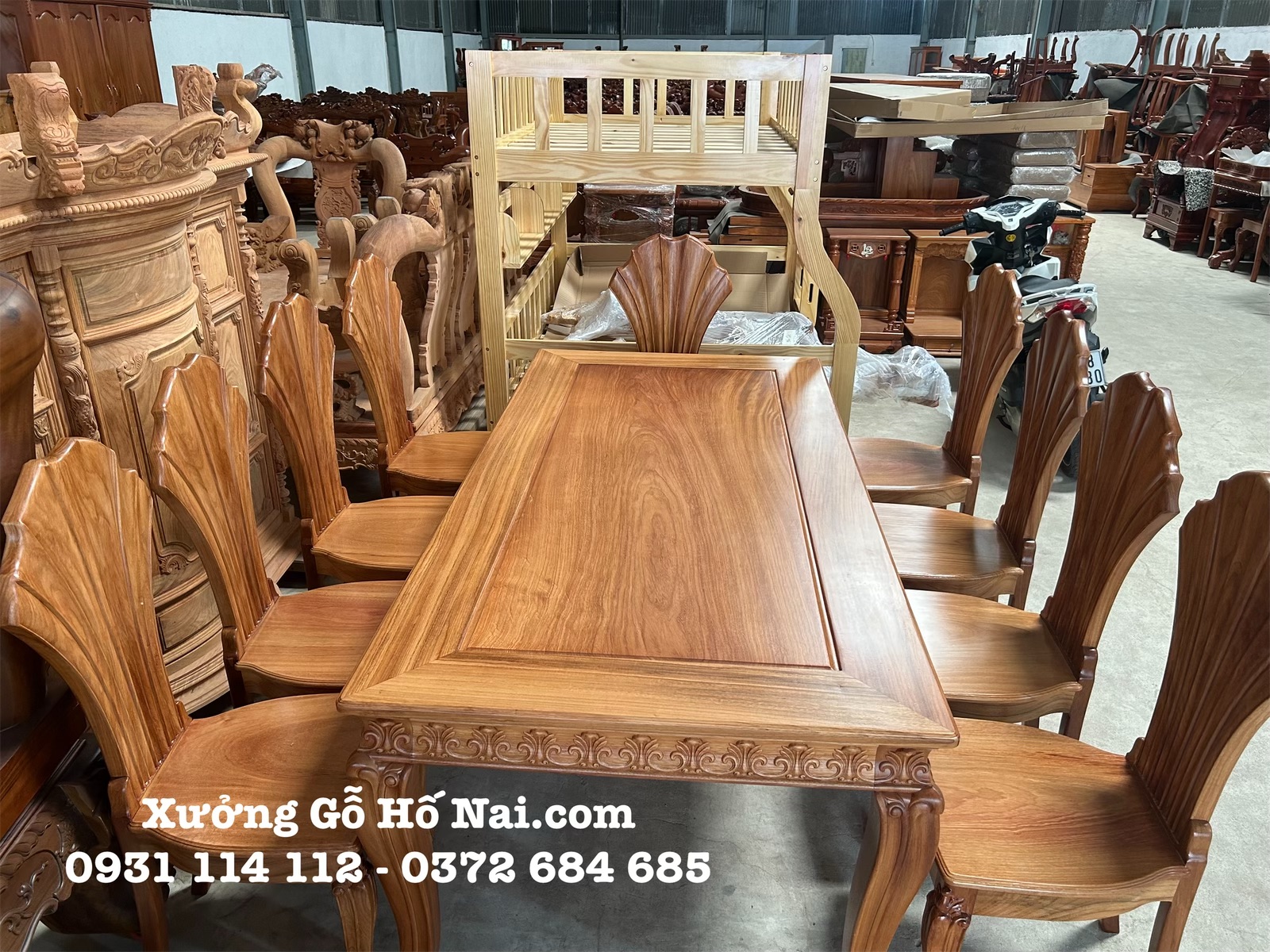 • Bàn ăn Căm Xe Bánh Tây 8 ghế cho phòng thờ