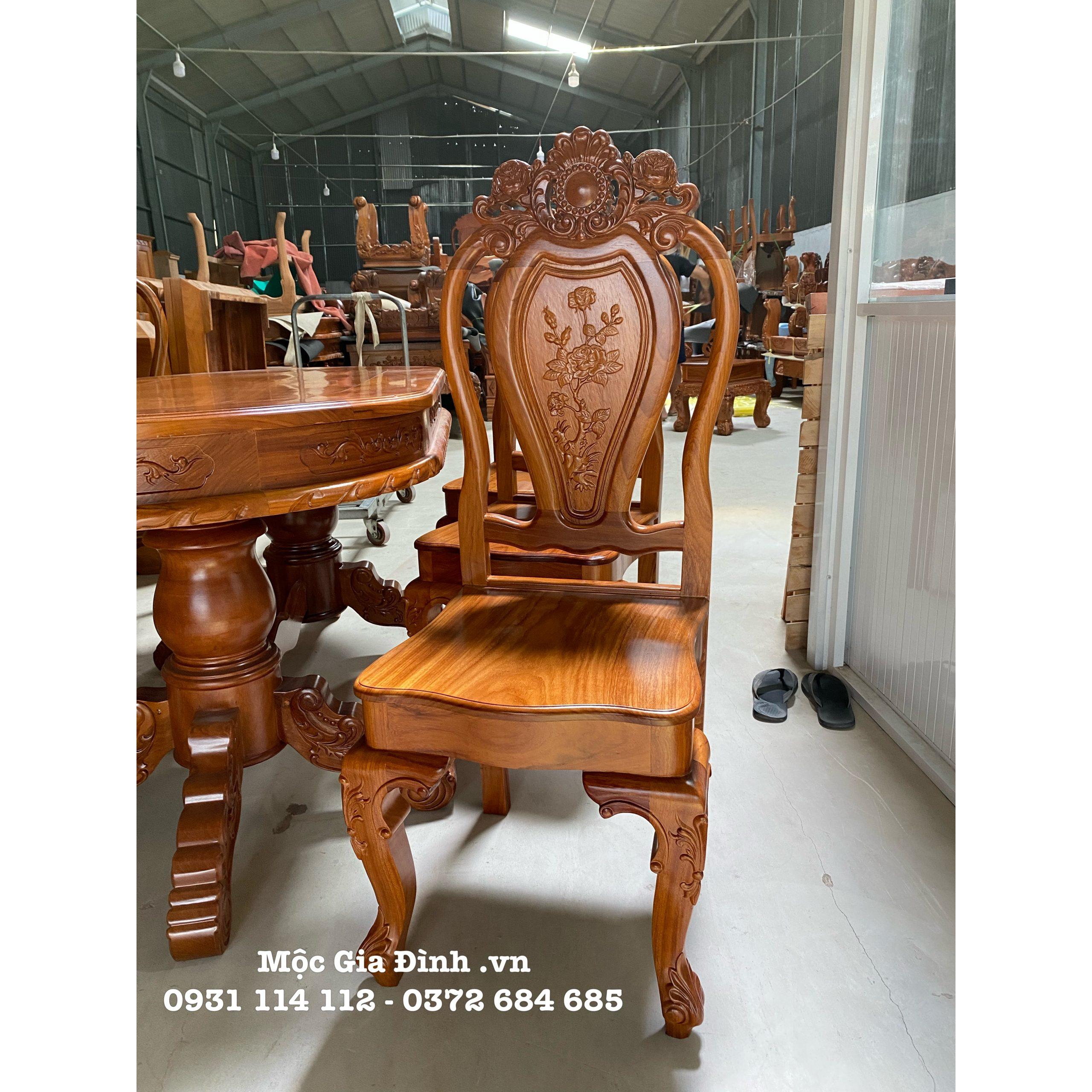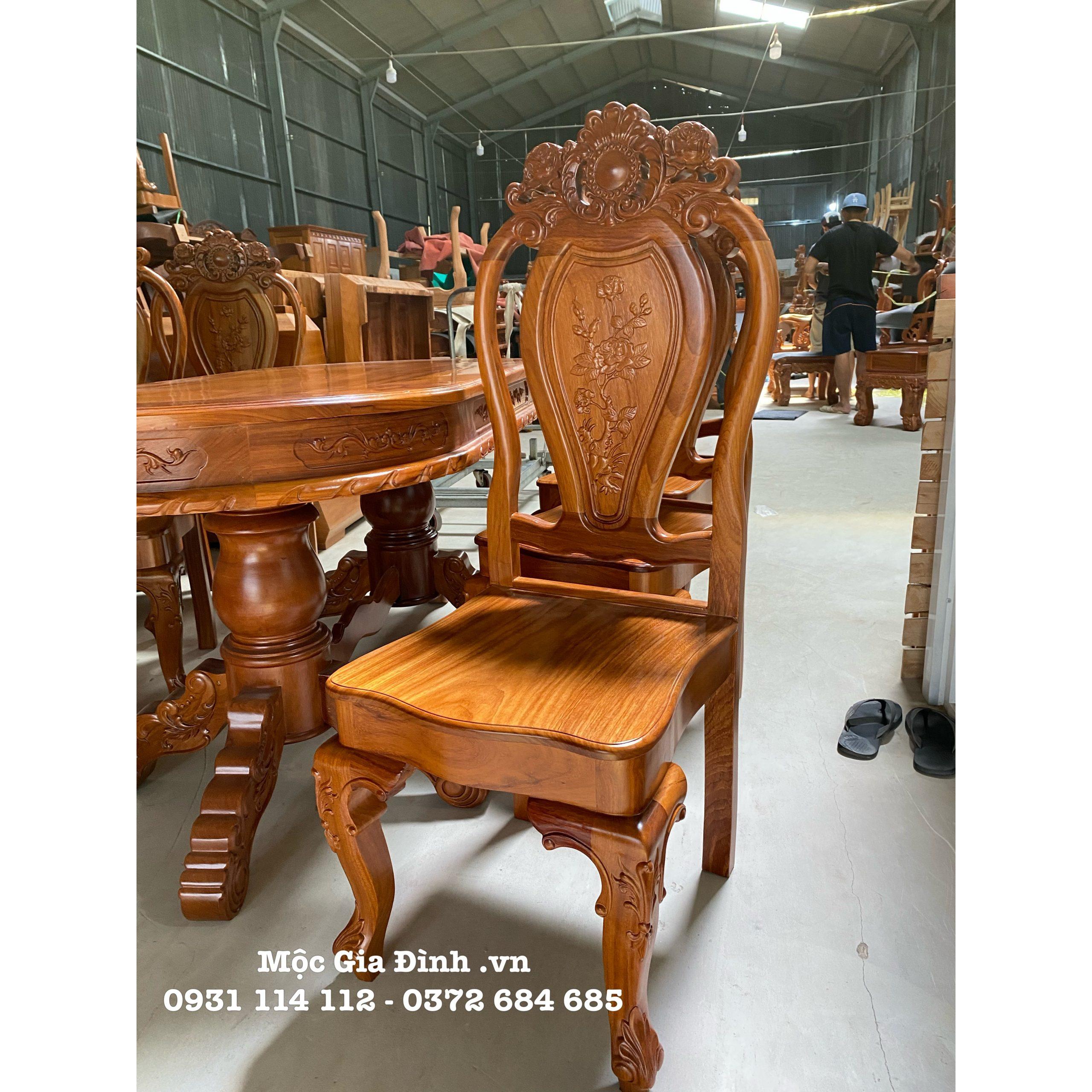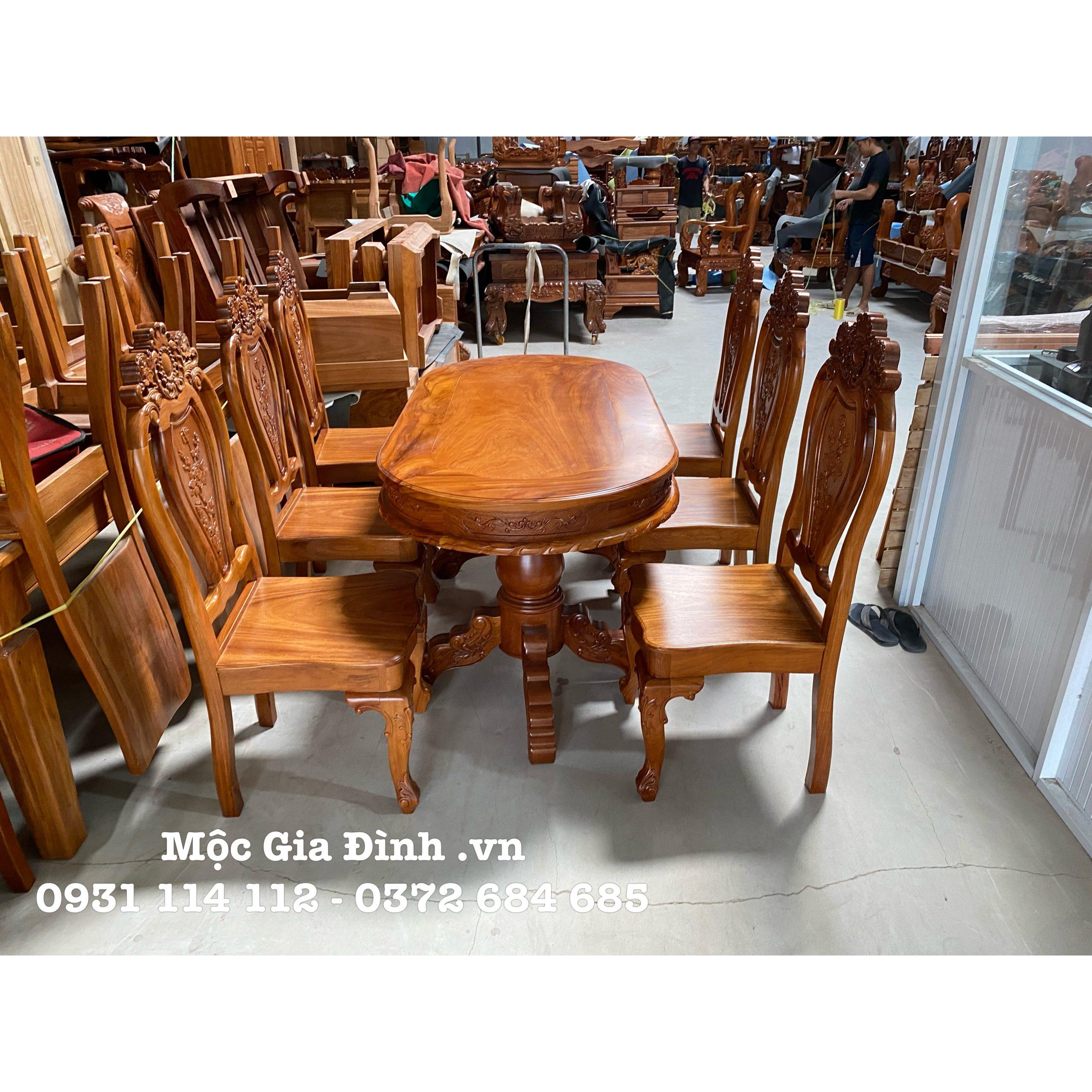Bàn ăn Gõ Oval 6 ghế mặt dày gỗ tự nhiên