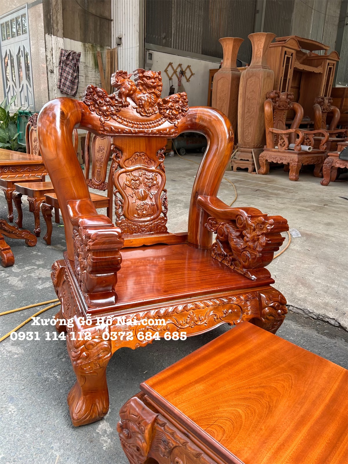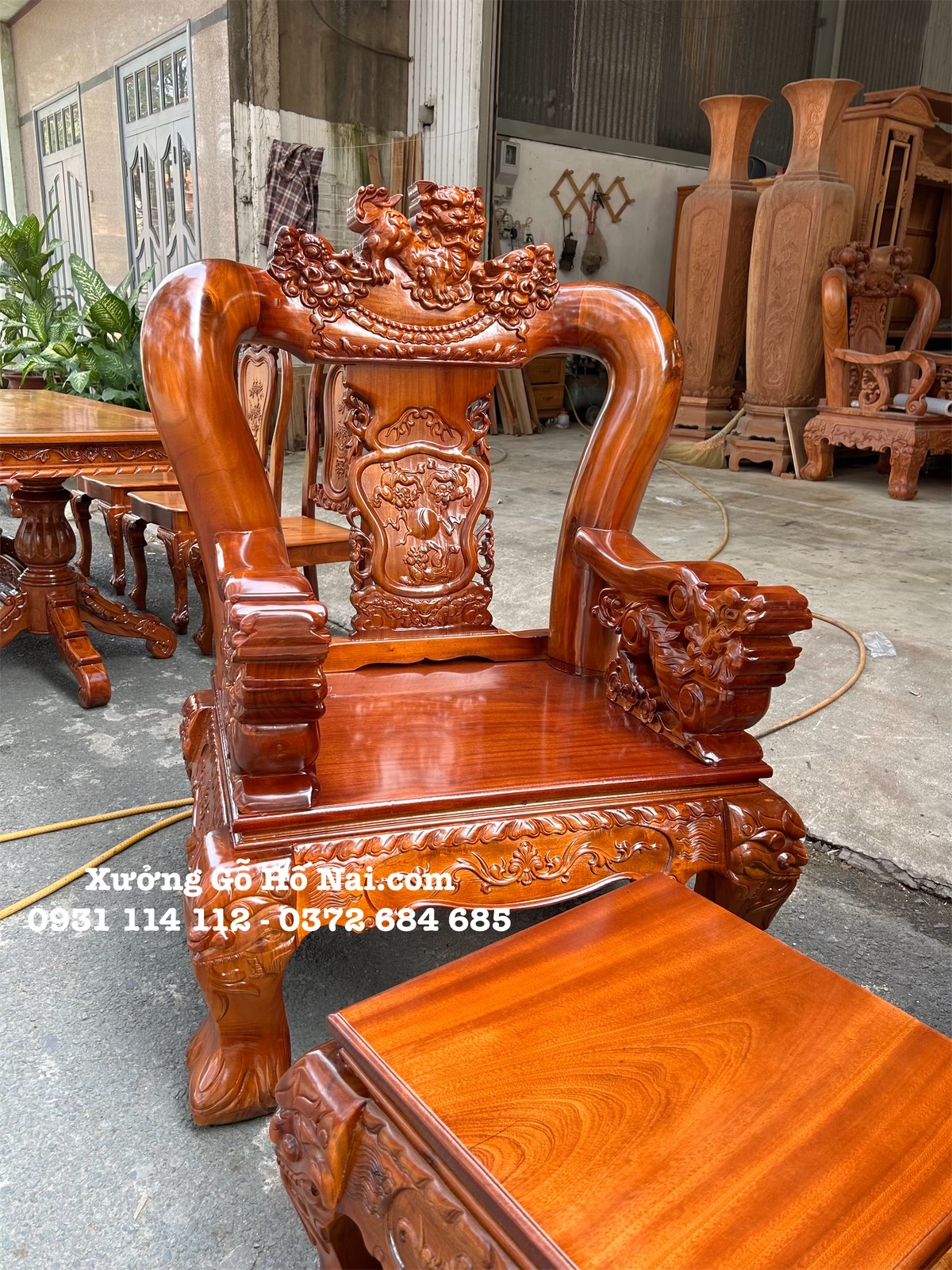 Bàn ghế gỗ Tràm Rừng Nghê Đỉnh Tay Nghê khối 14
