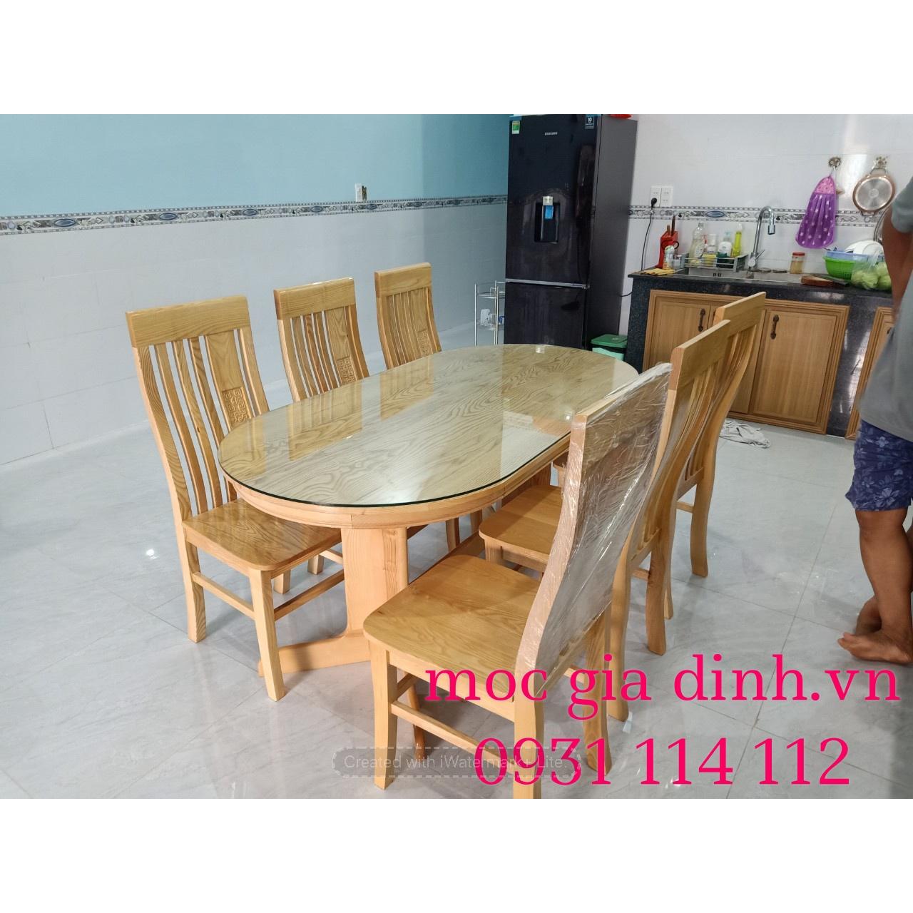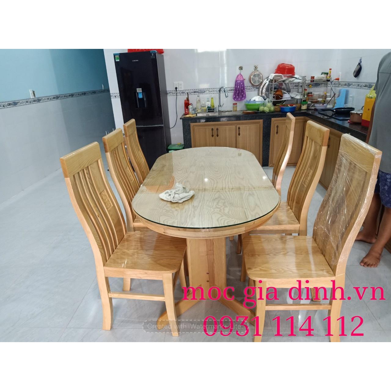 Bàn ăn Sồi Pháp Oval 6 ghế tự nhiên
