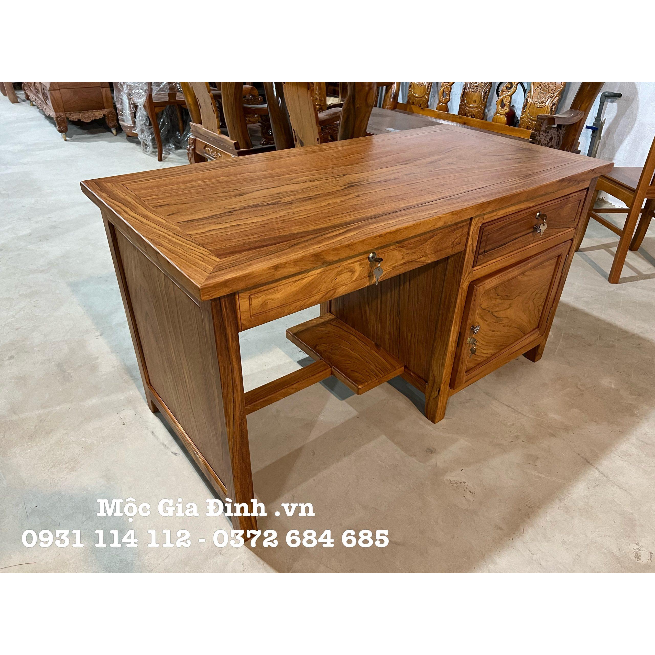 Bàn làm việc cao cấp được làm bằng gỗ Gõ Đỏ 100%. Cùng thiết kế ngăn kéo và hộc tủ tiện lợi.