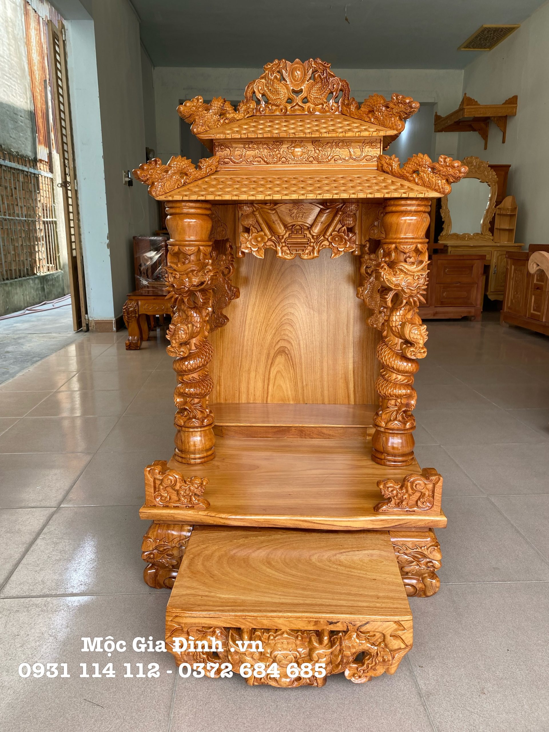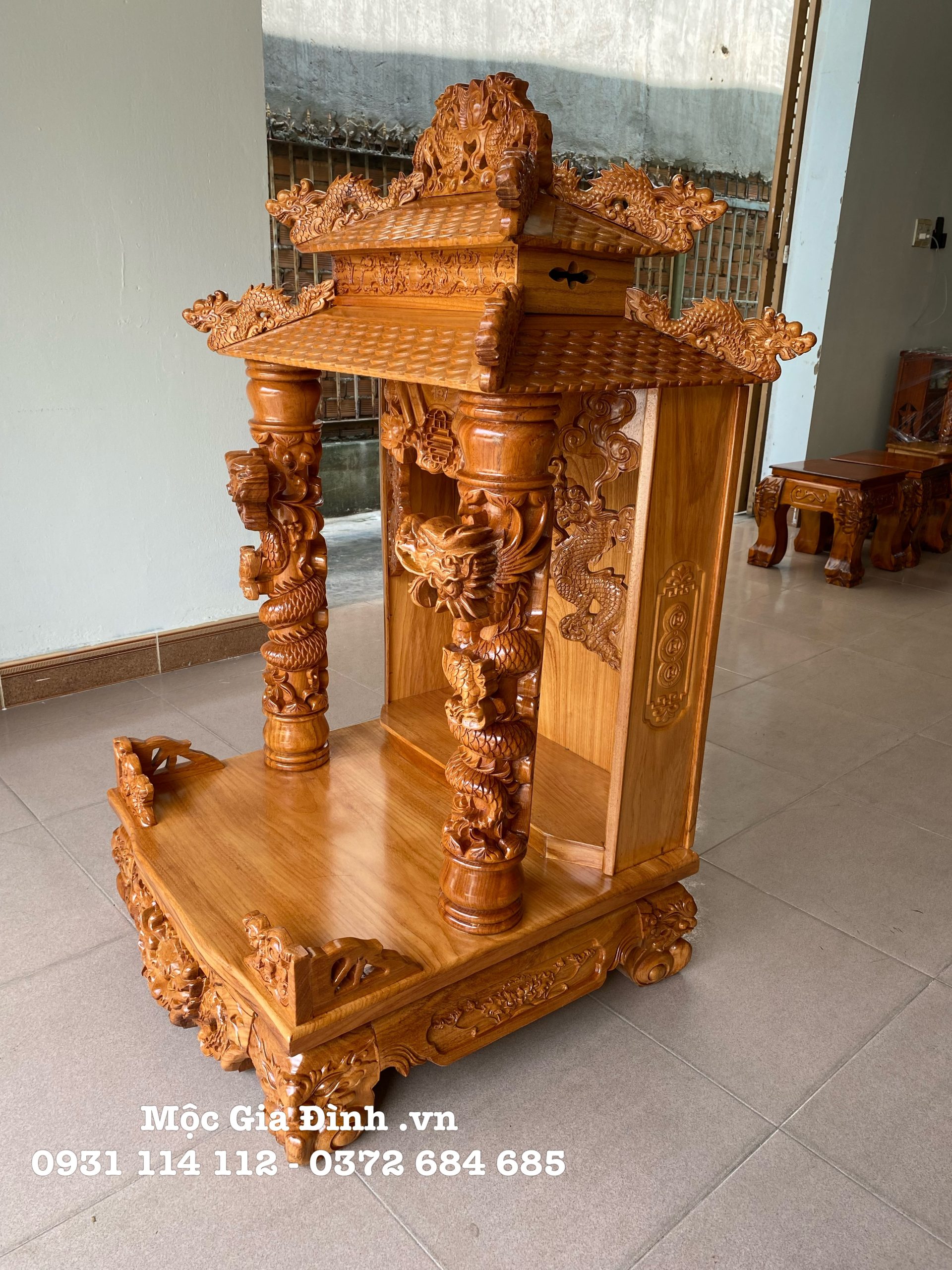 Bàn thờ Thần Tài Gõ Đỏ Mái Rồng - 60*60*117