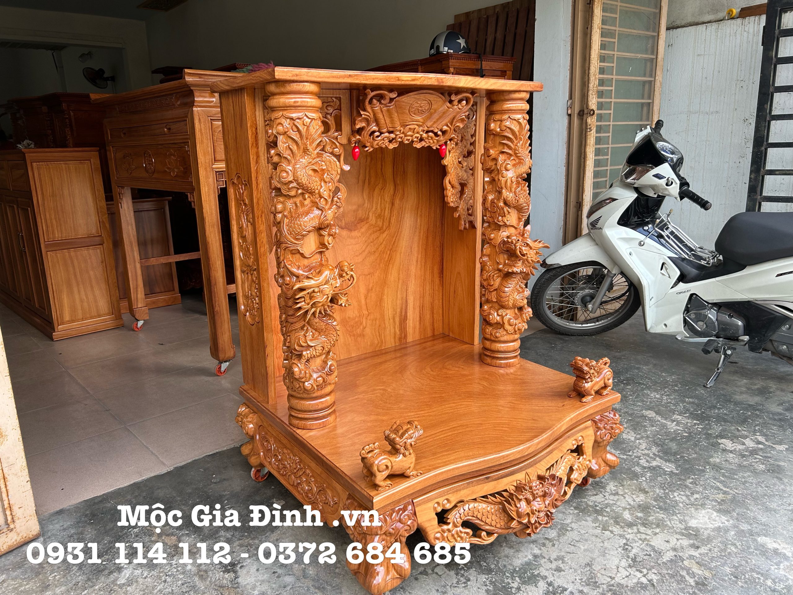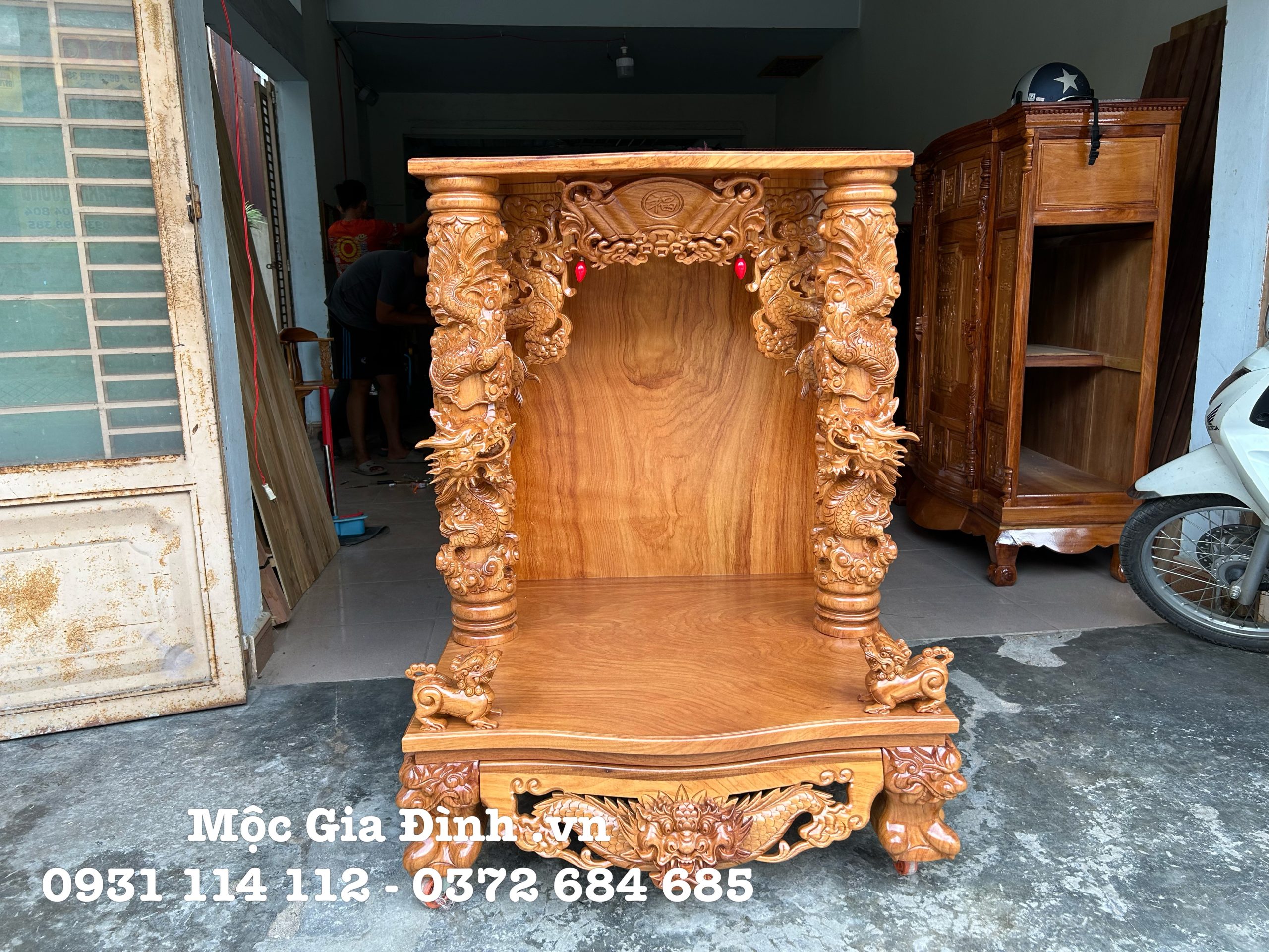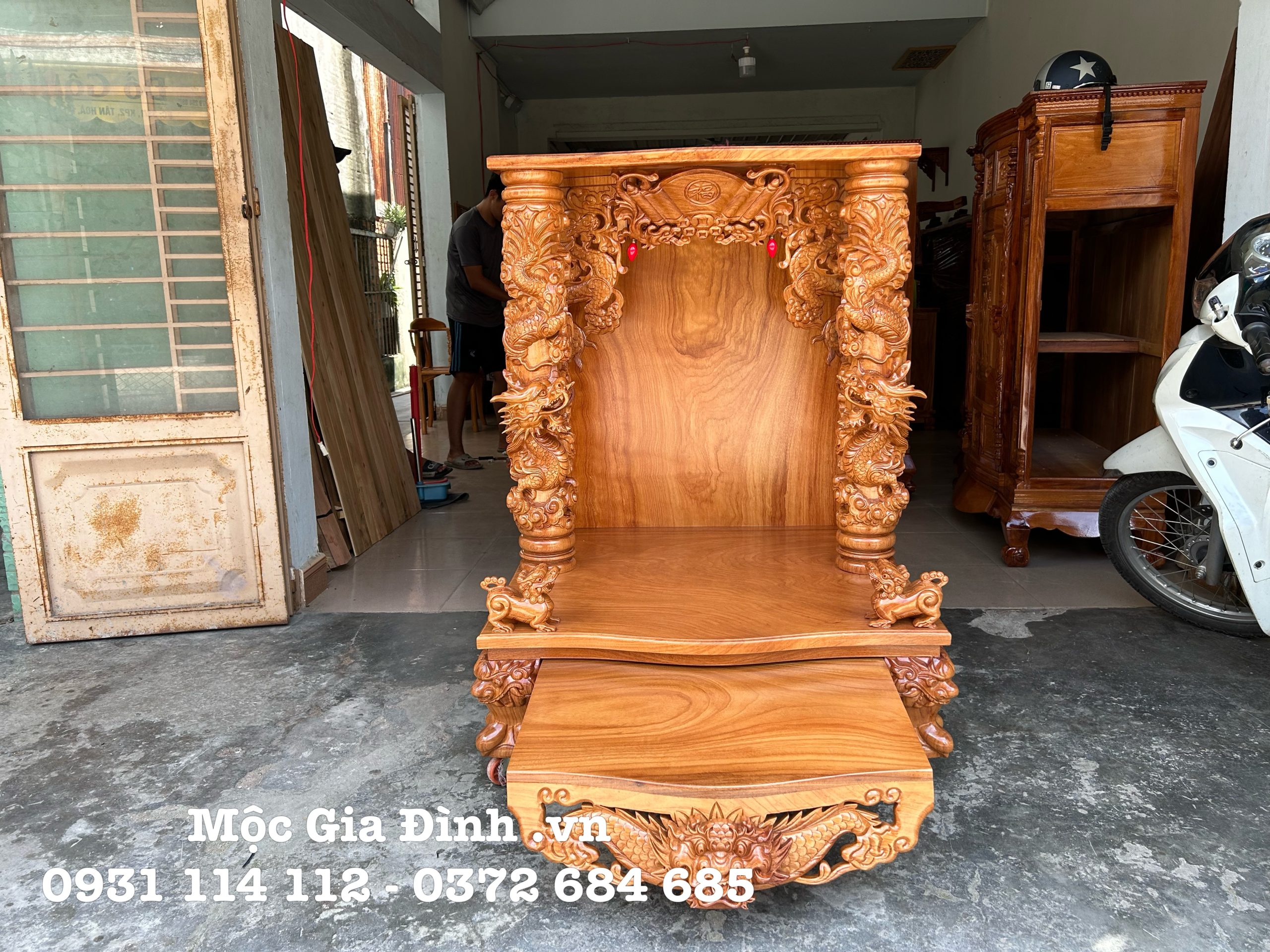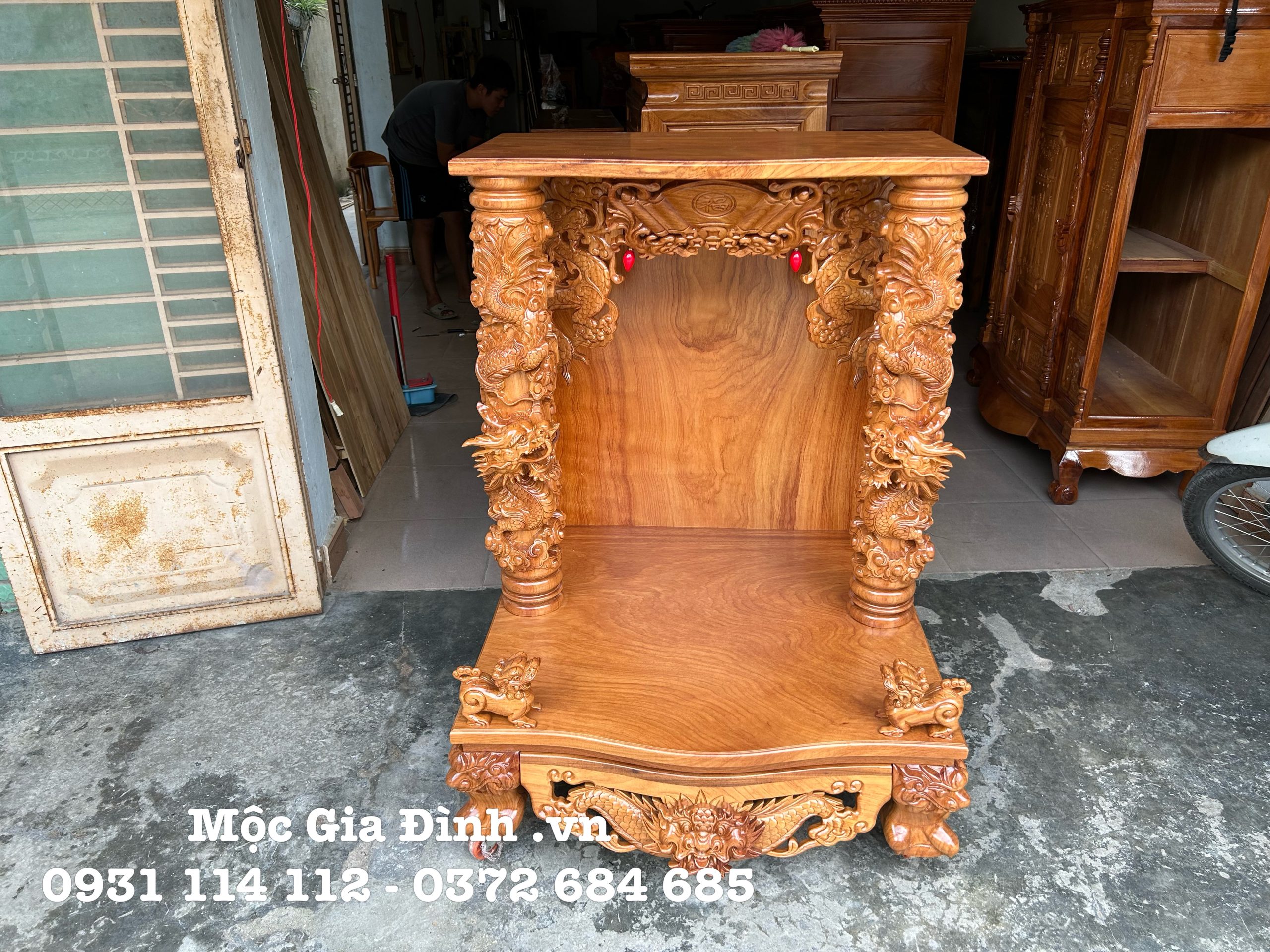 Bàn thờ Thần Tài Gõ Đỏ Rồng Mây 88*81*118 mặt 3cm