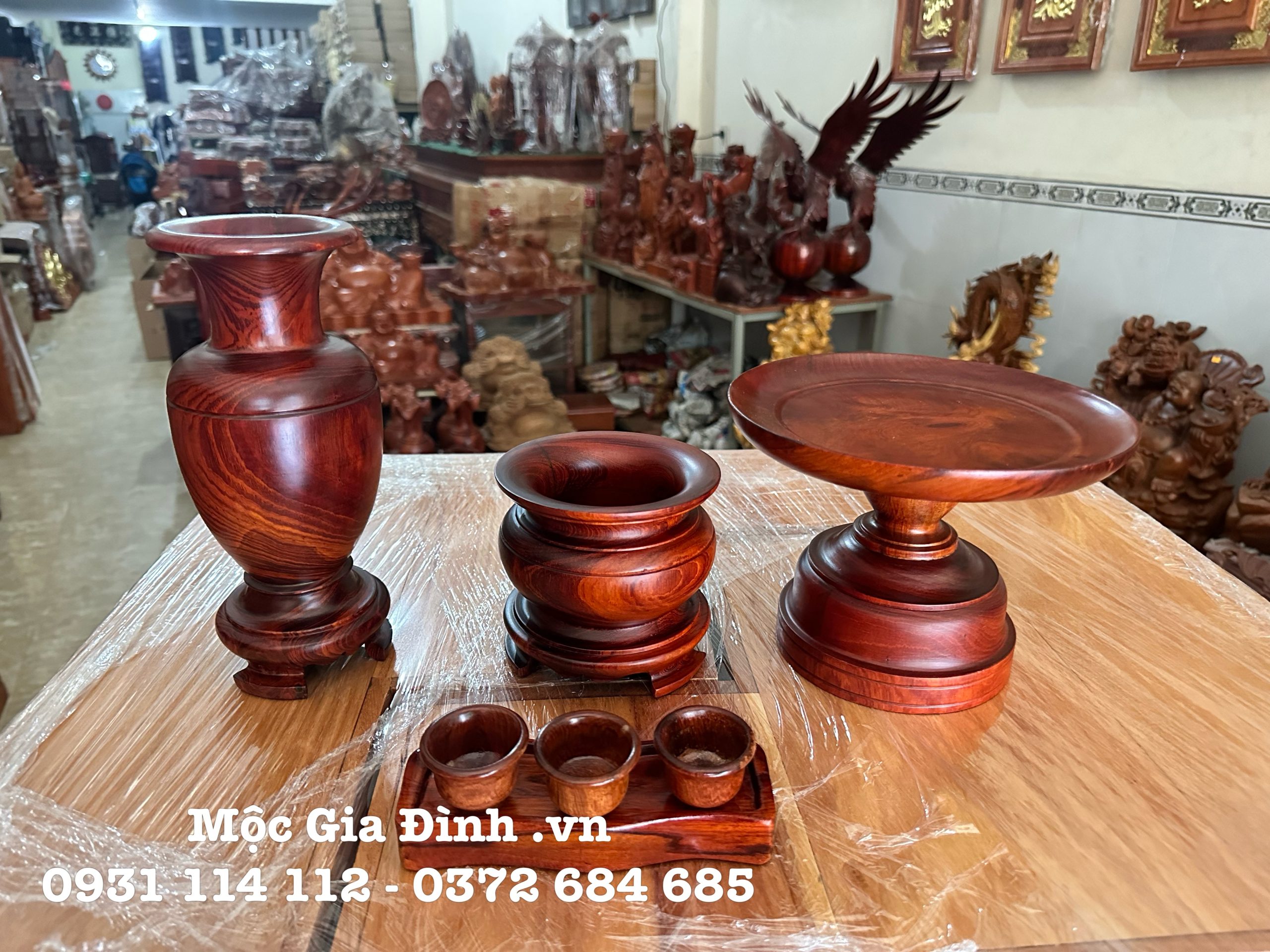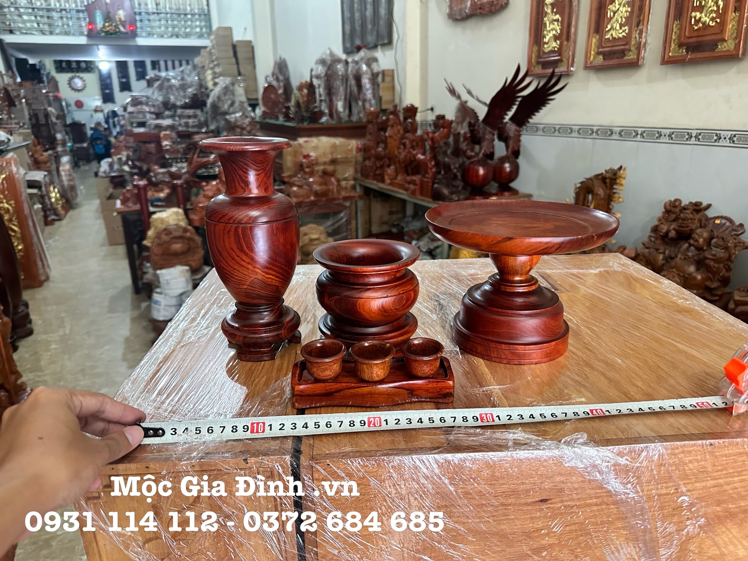 • Bộ đồ thờ được làm hoàn toàn từ gỗ Hương