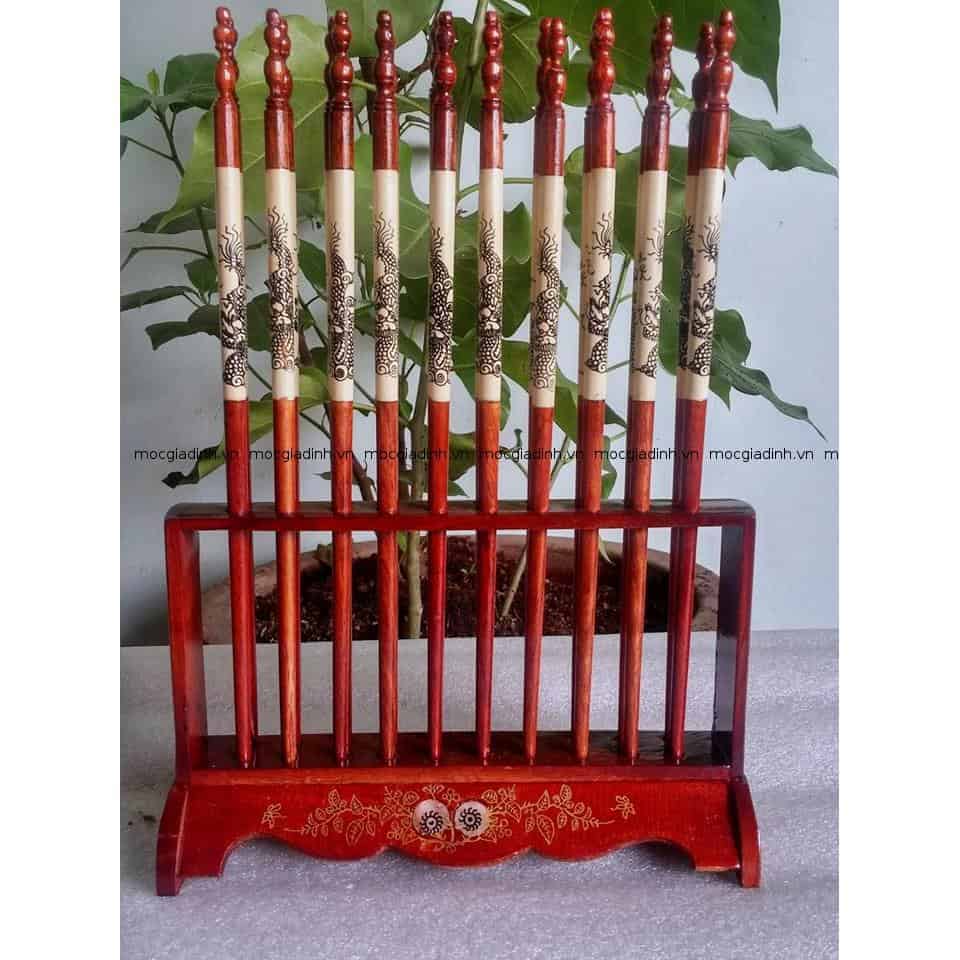 Bộ đũa thờ được làm bằng gỗ gõ.