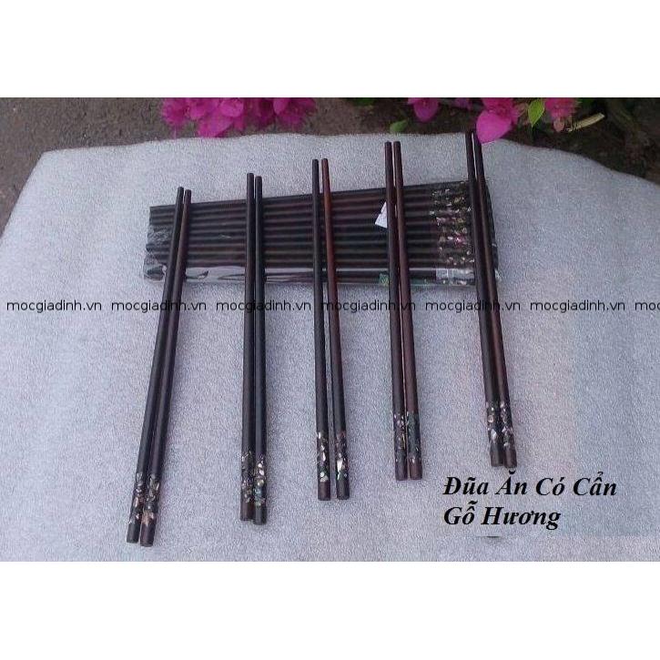 Đũa được làm bằng gỗ hương được cẩn trai tinh tế.