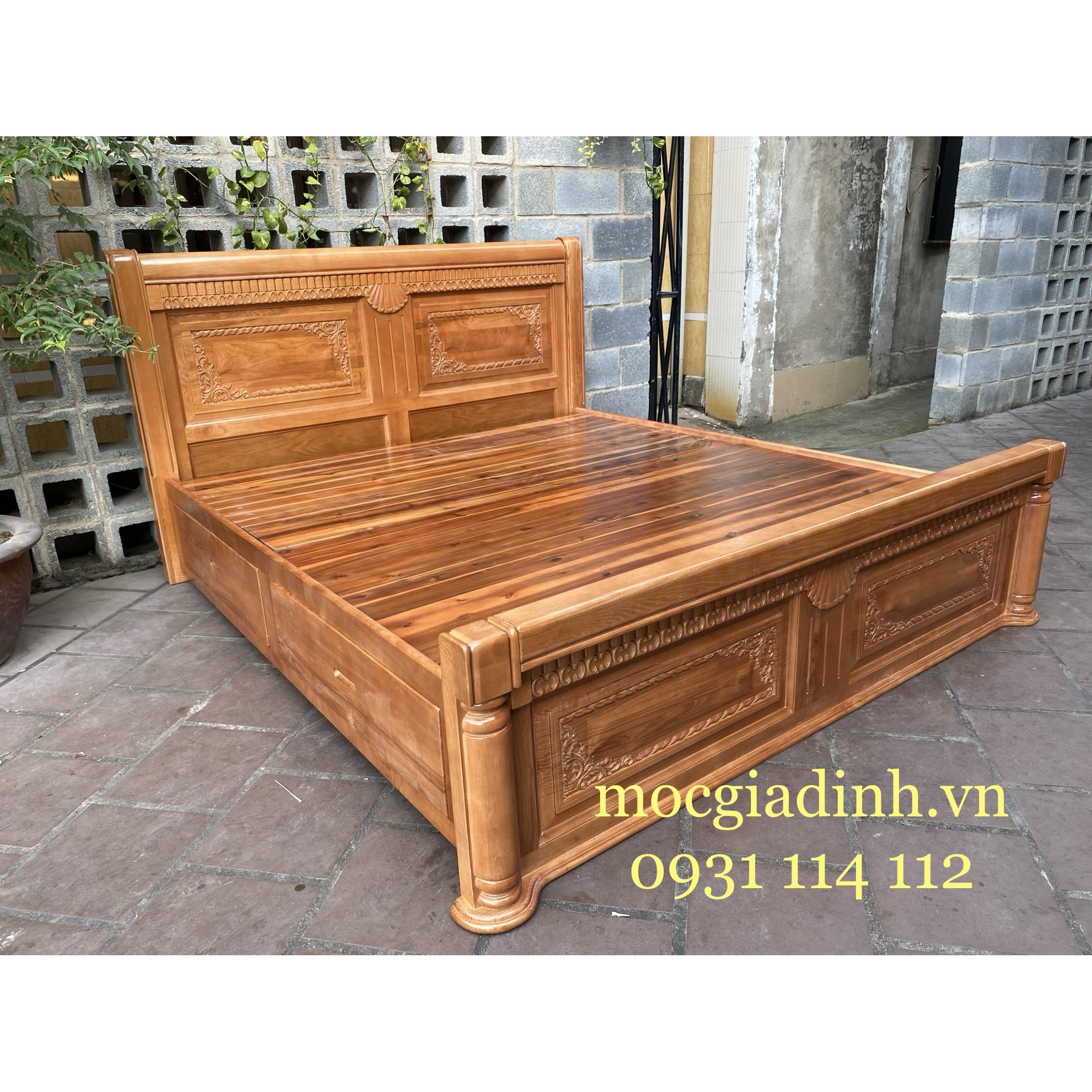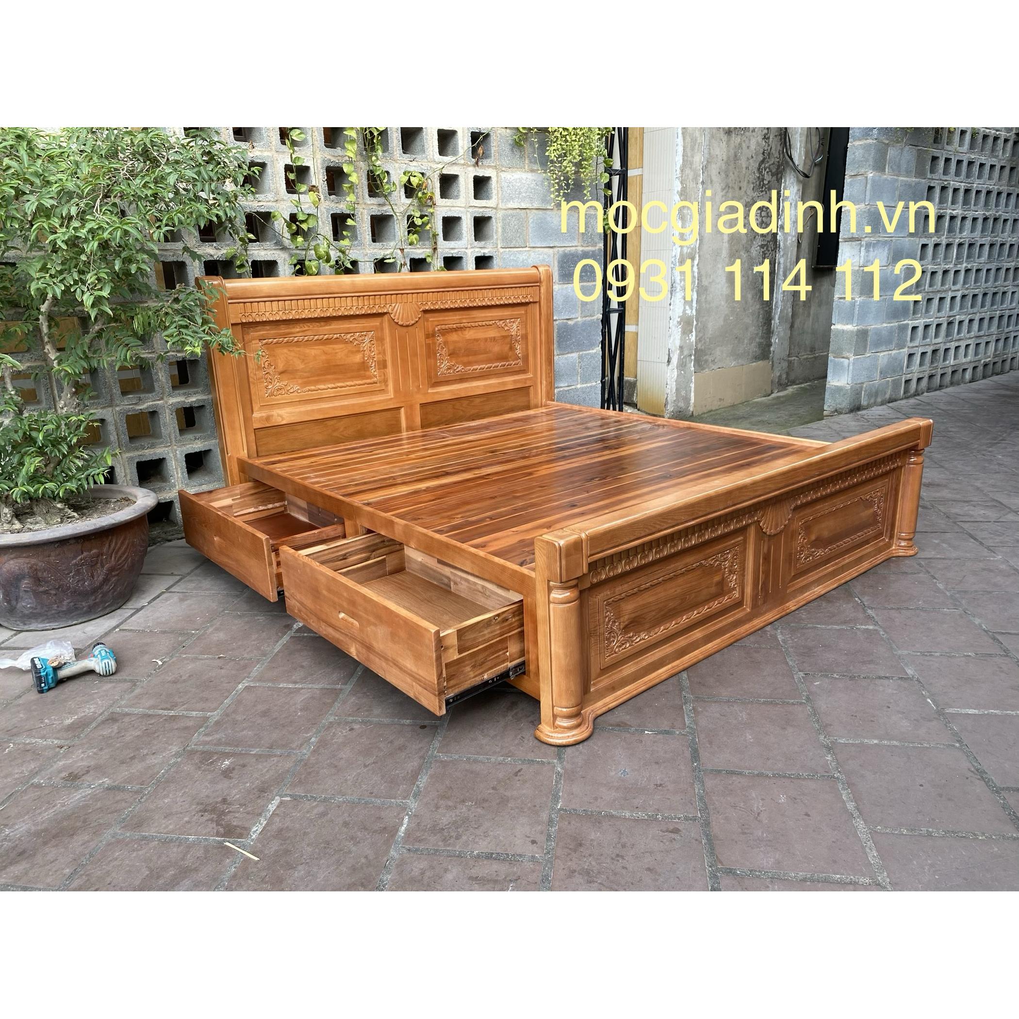 Giường ngủ được làm hoàn toàn từ gỗ sồi pháp. Giường thiết kế kèm hộc kéo bên hông để tạo thêm không gian để chăn gối và đồ đạc. Đầu đuôi dày 5cm.