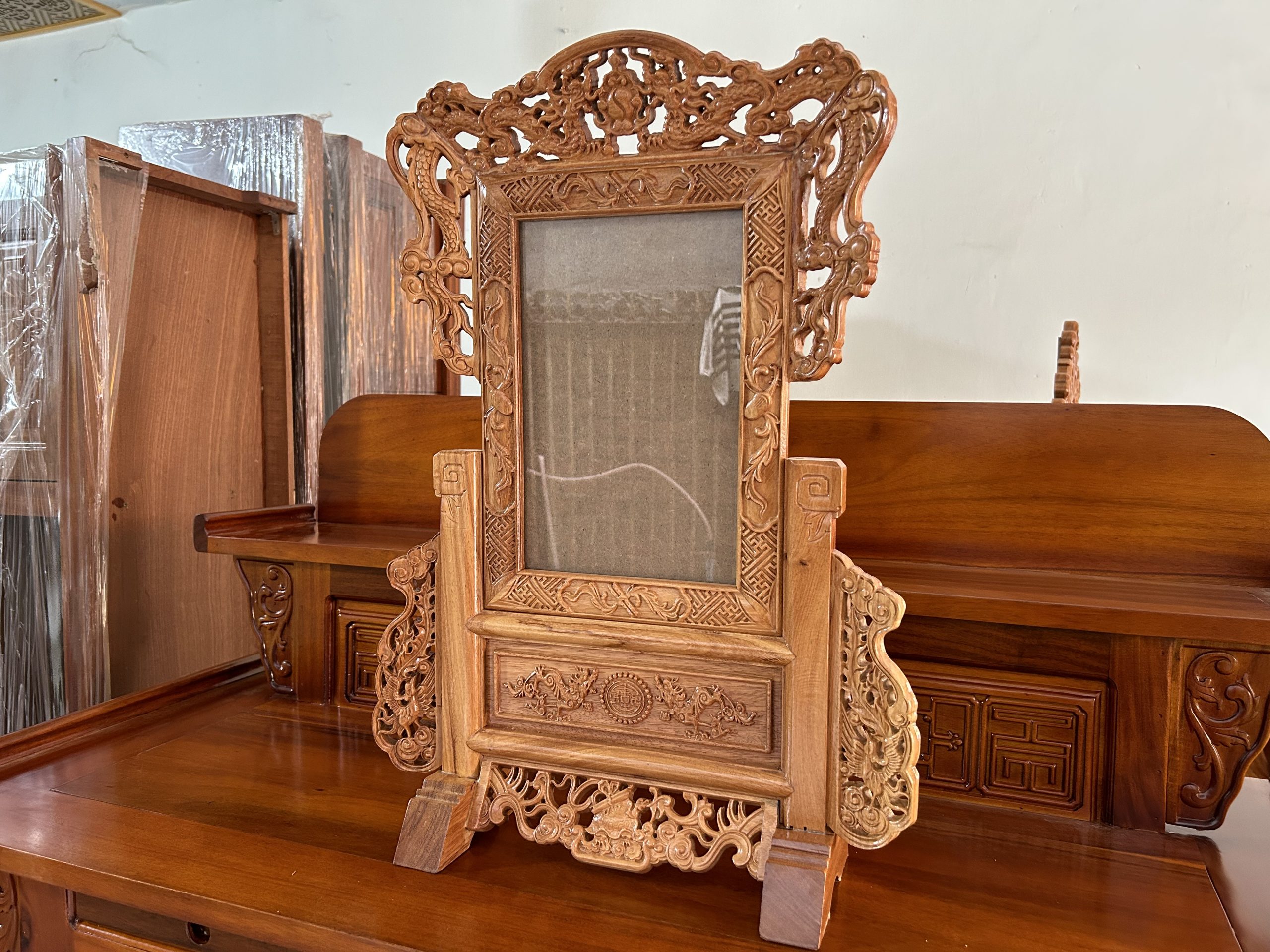 • Khung ảnh thờ được làm hoàn toàn từ gỗ Gõ Đỏ