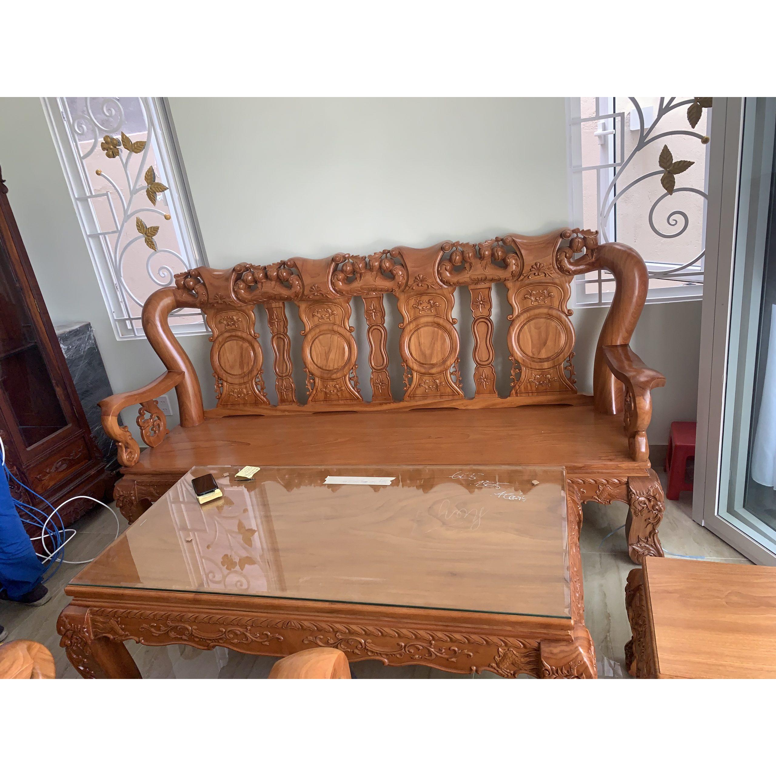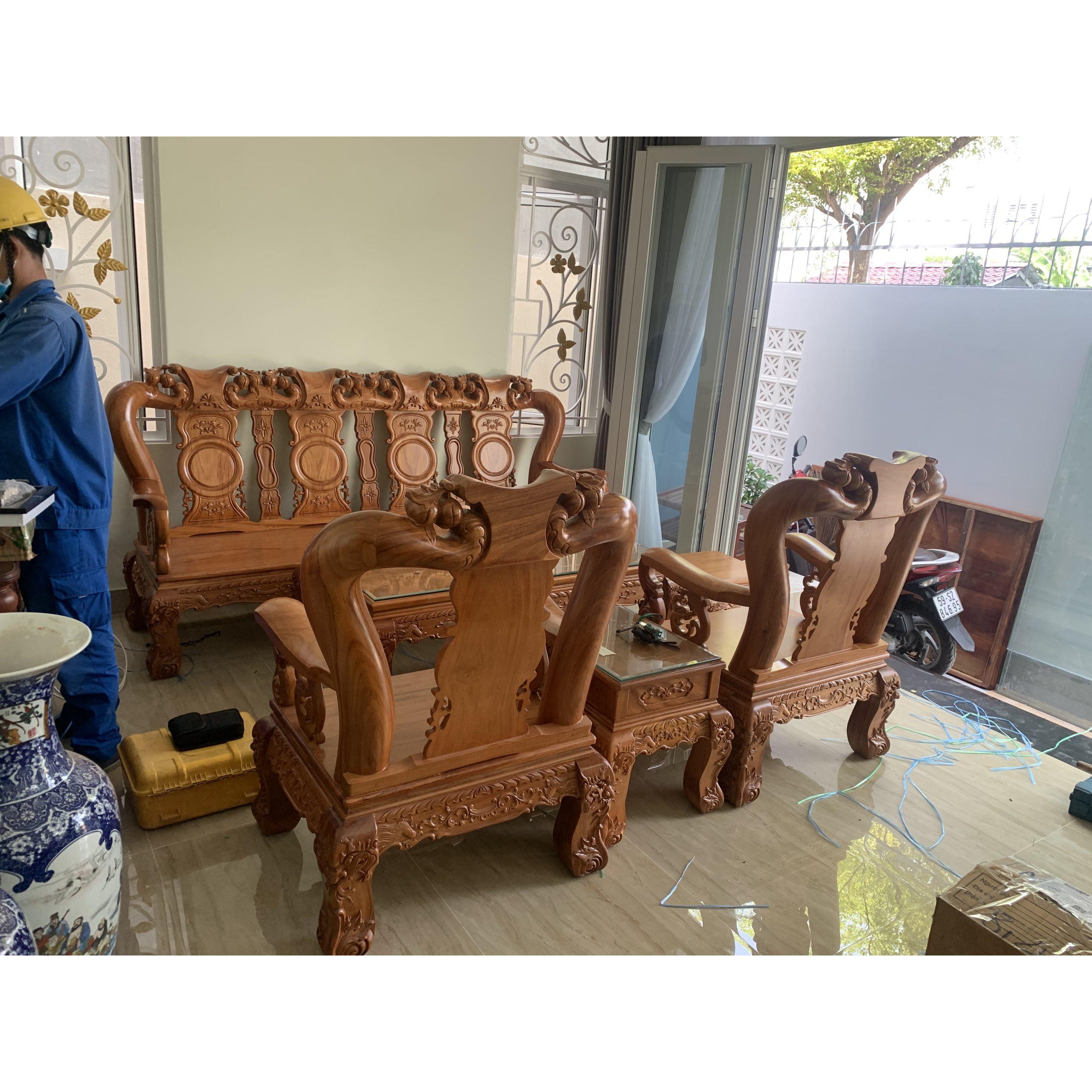 Bộ bàn ghế Gõ Minh Quốc Đào tay 12- Băng 4 tựa