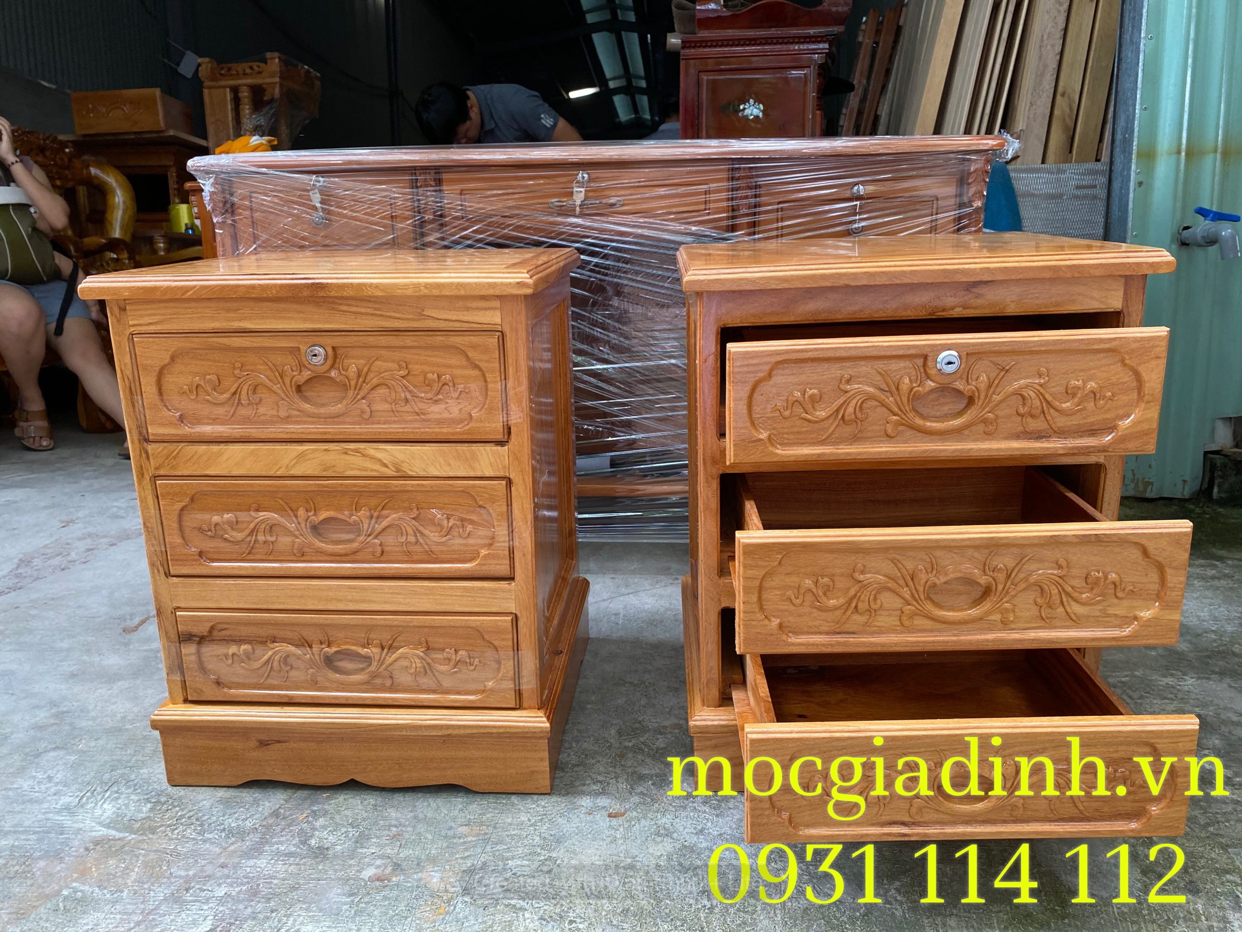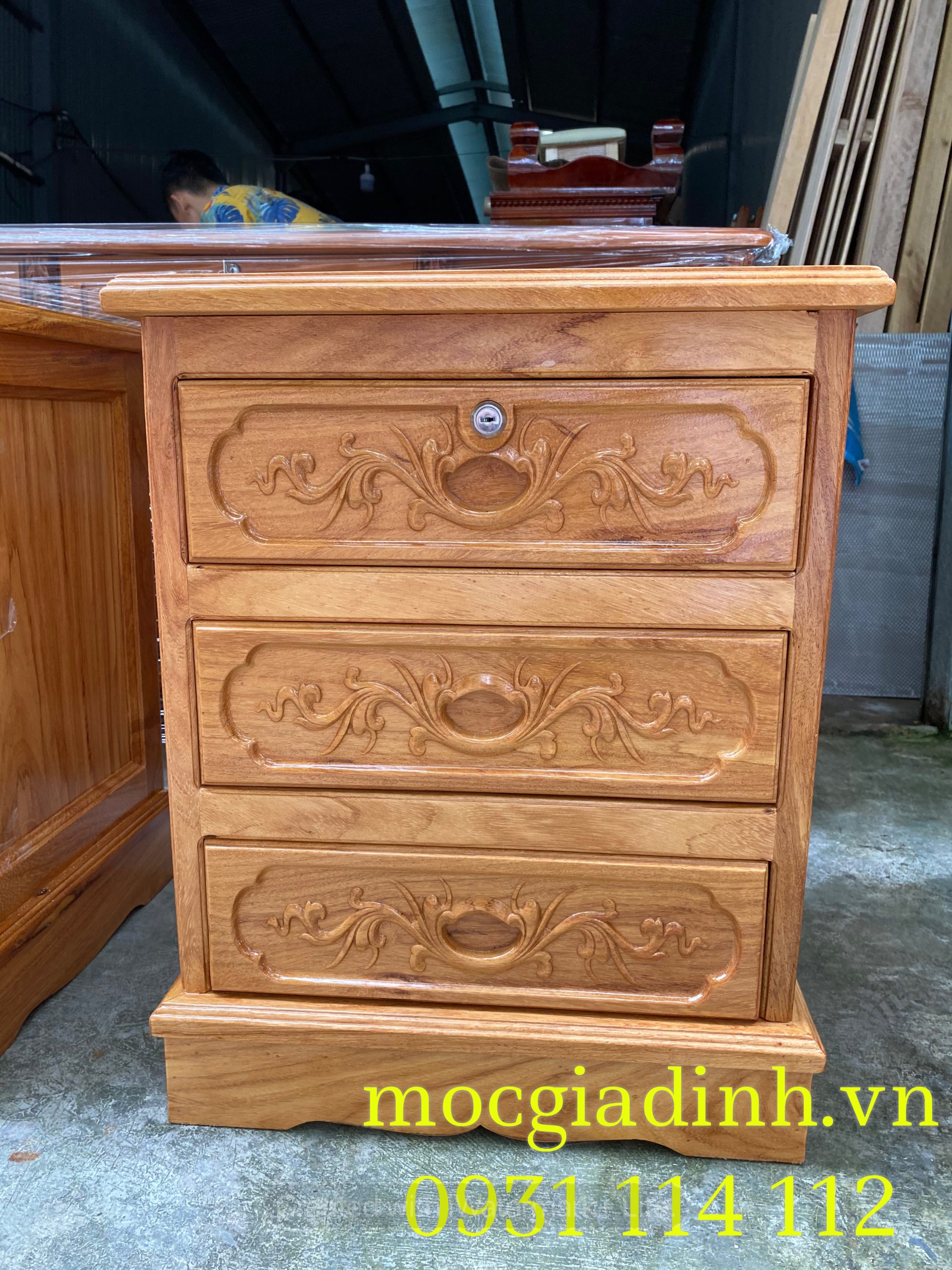 Tủ đầu giường gỗ gõ hàng dày