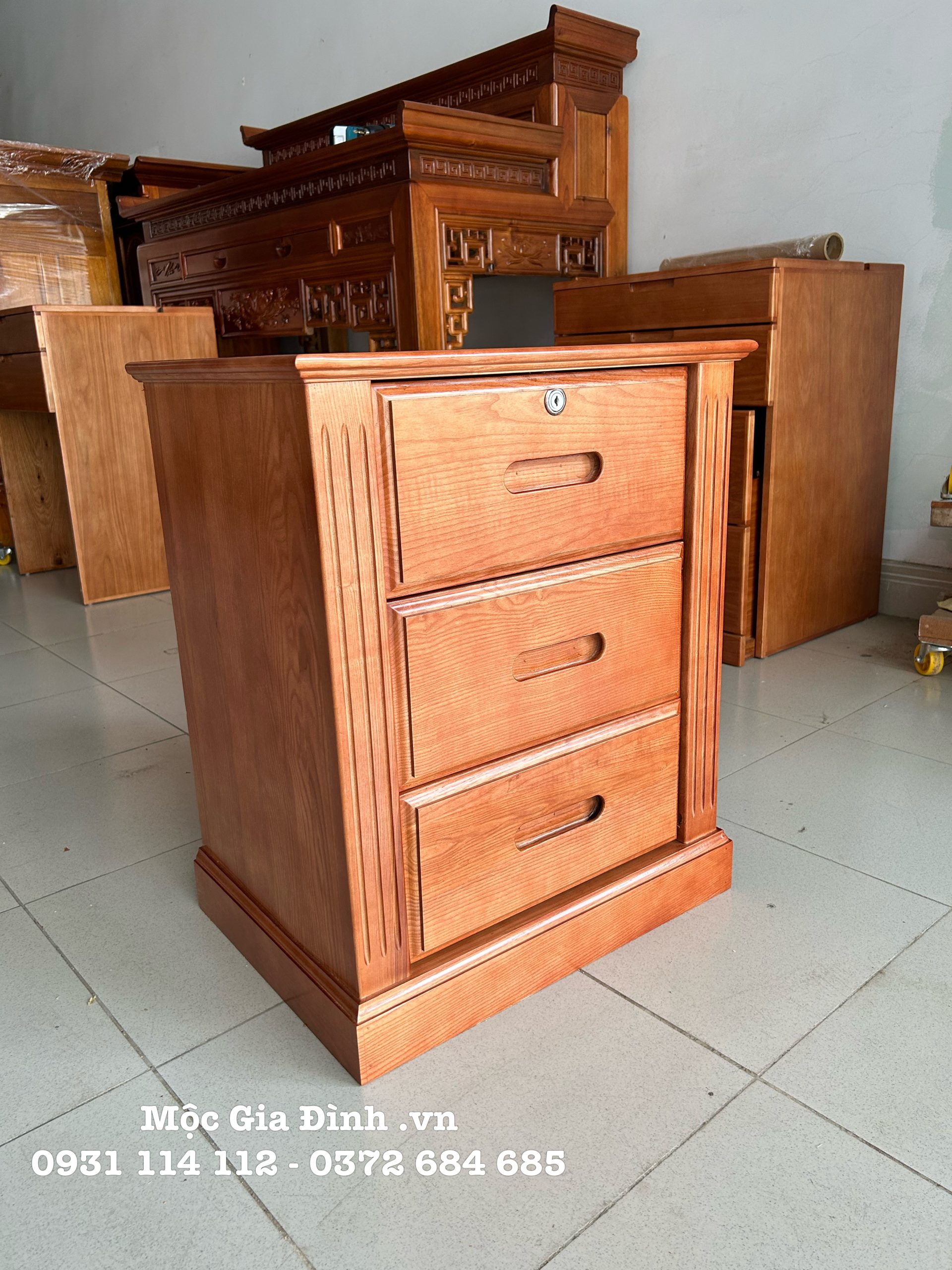 - Tủ được làm bằng gỗ sồi. Hậu và ngăn kéo được làm từ gỗ cao su phủ sồi. Với thiết kế 3 ngăn tiện lợi cho việc để những đồ dùng nhỏ trong phòng ngủ.