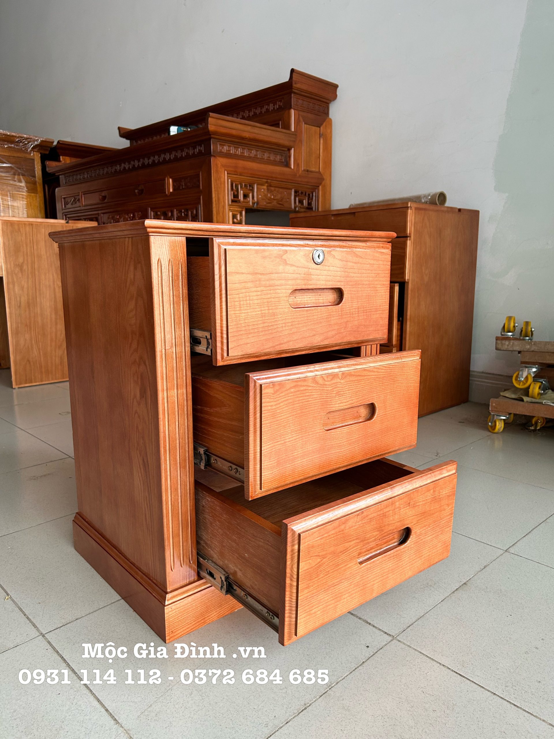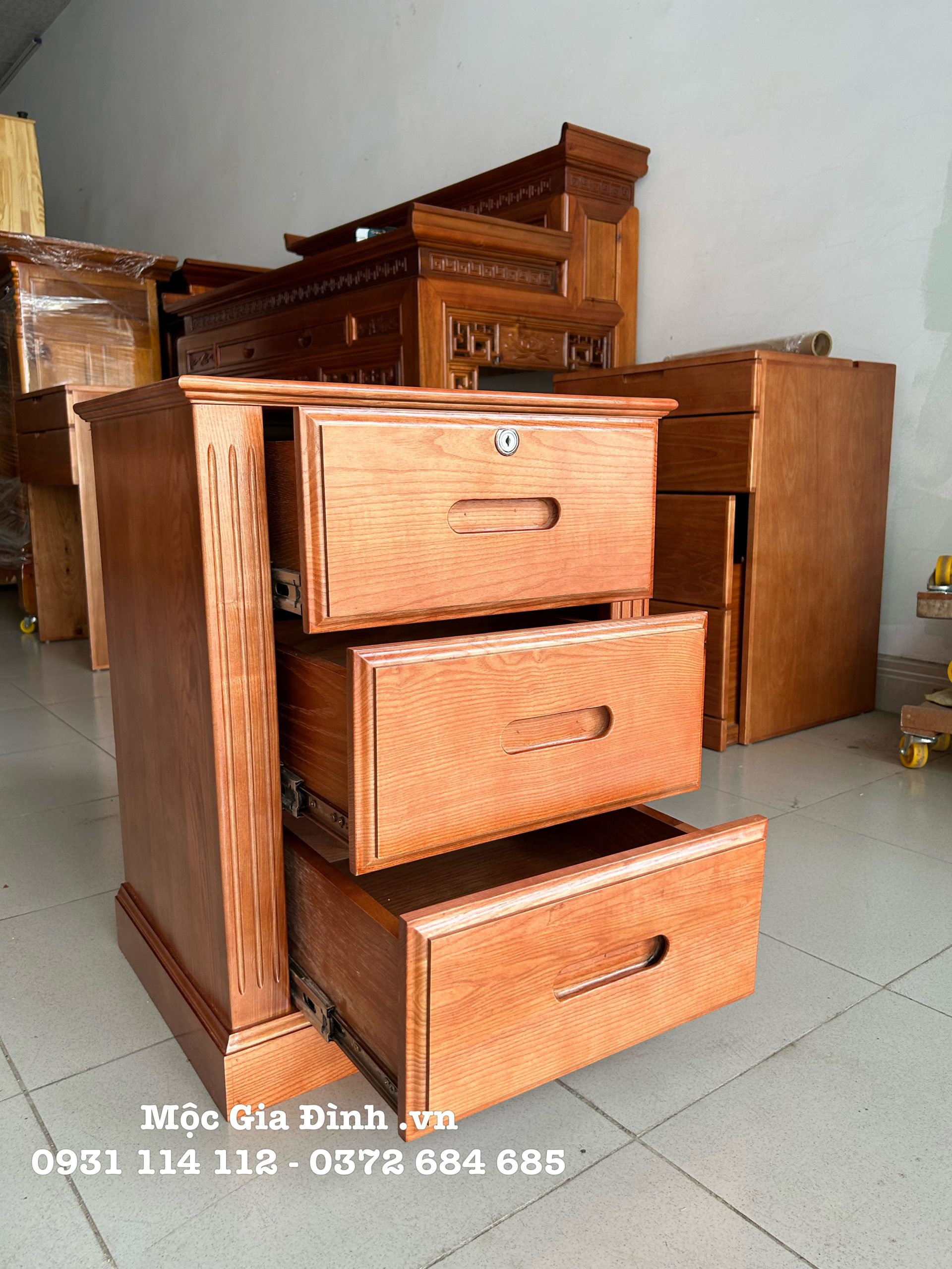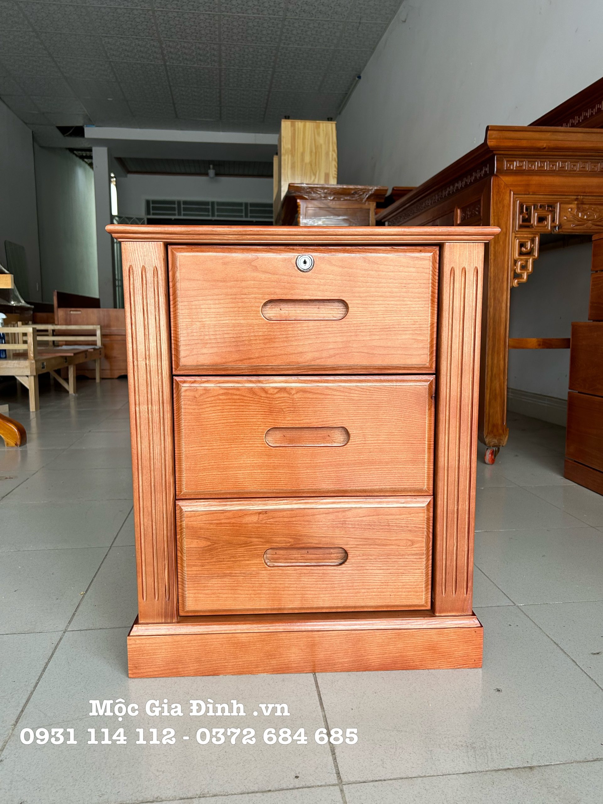 - Tủ được làm bằng gỗ sồi. Hậu và ngăn kéo được làm từ gỗ cao su phủ sồi. Với thiết kế 3 ngăn tiện lợi cho việc để những đồ dùng nhỏ trong phòng ngủ.