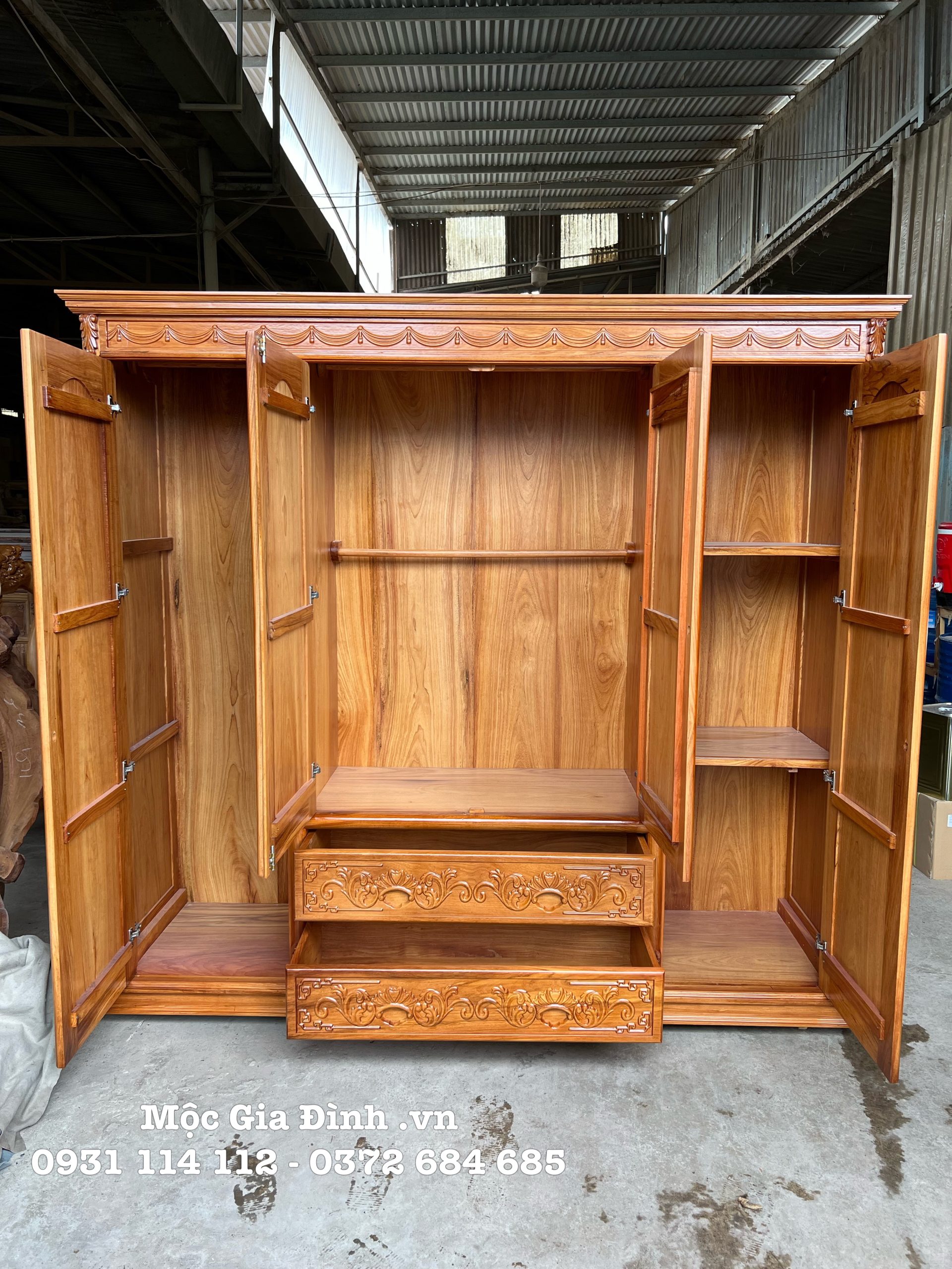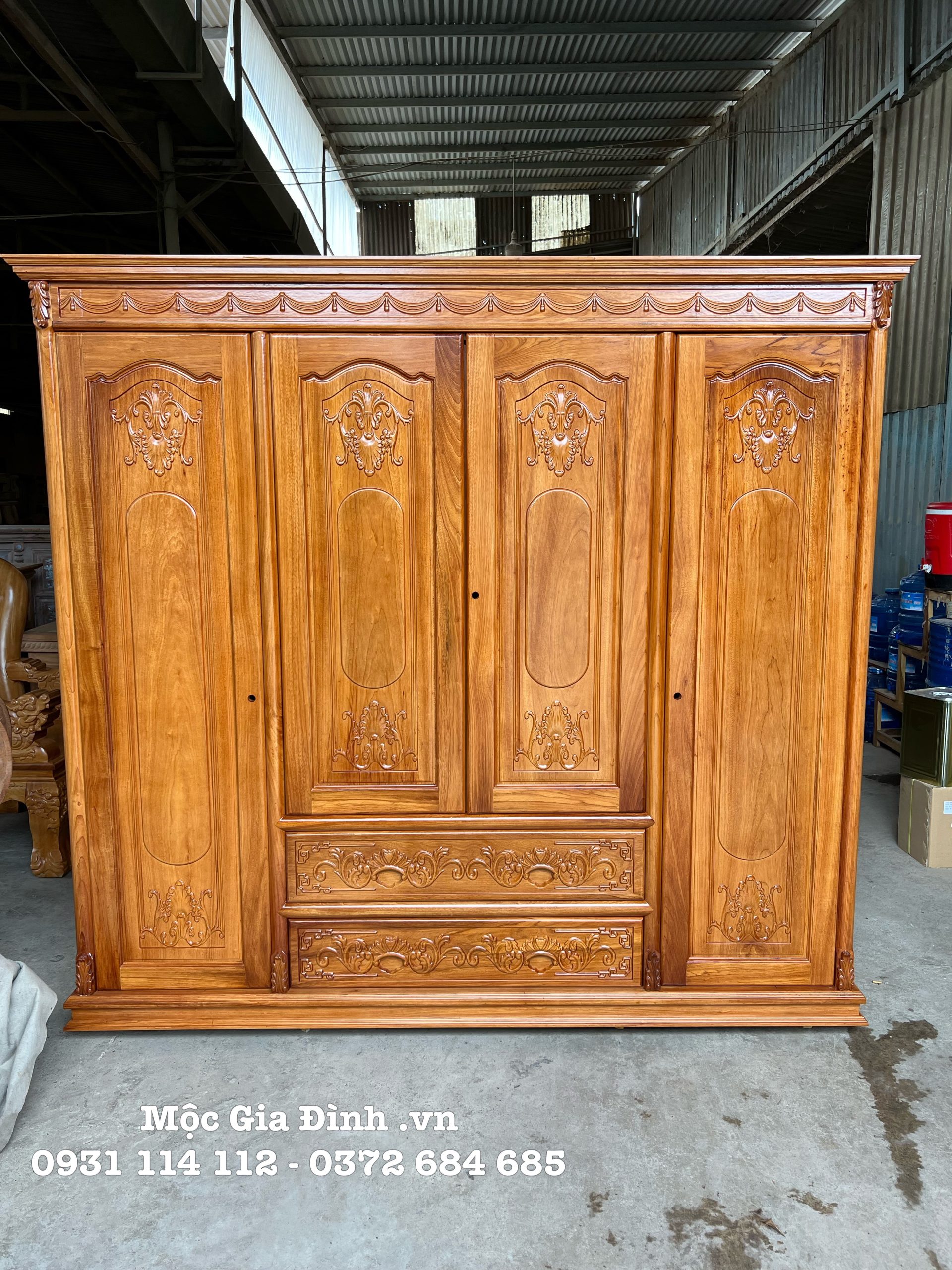 Tủ quần áo gỗ Gõ Đỏ Cánh Chạm