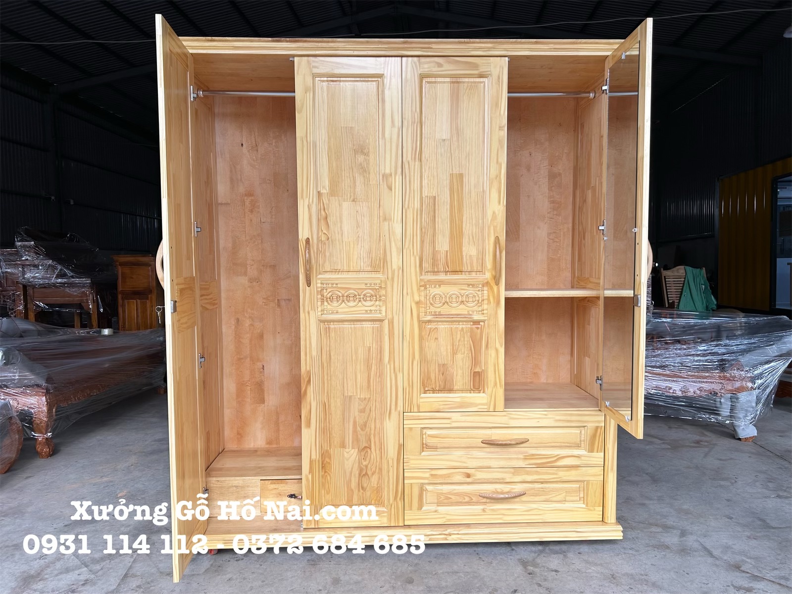 Tủ quần áo Gỗ Thông 4 cánh TN