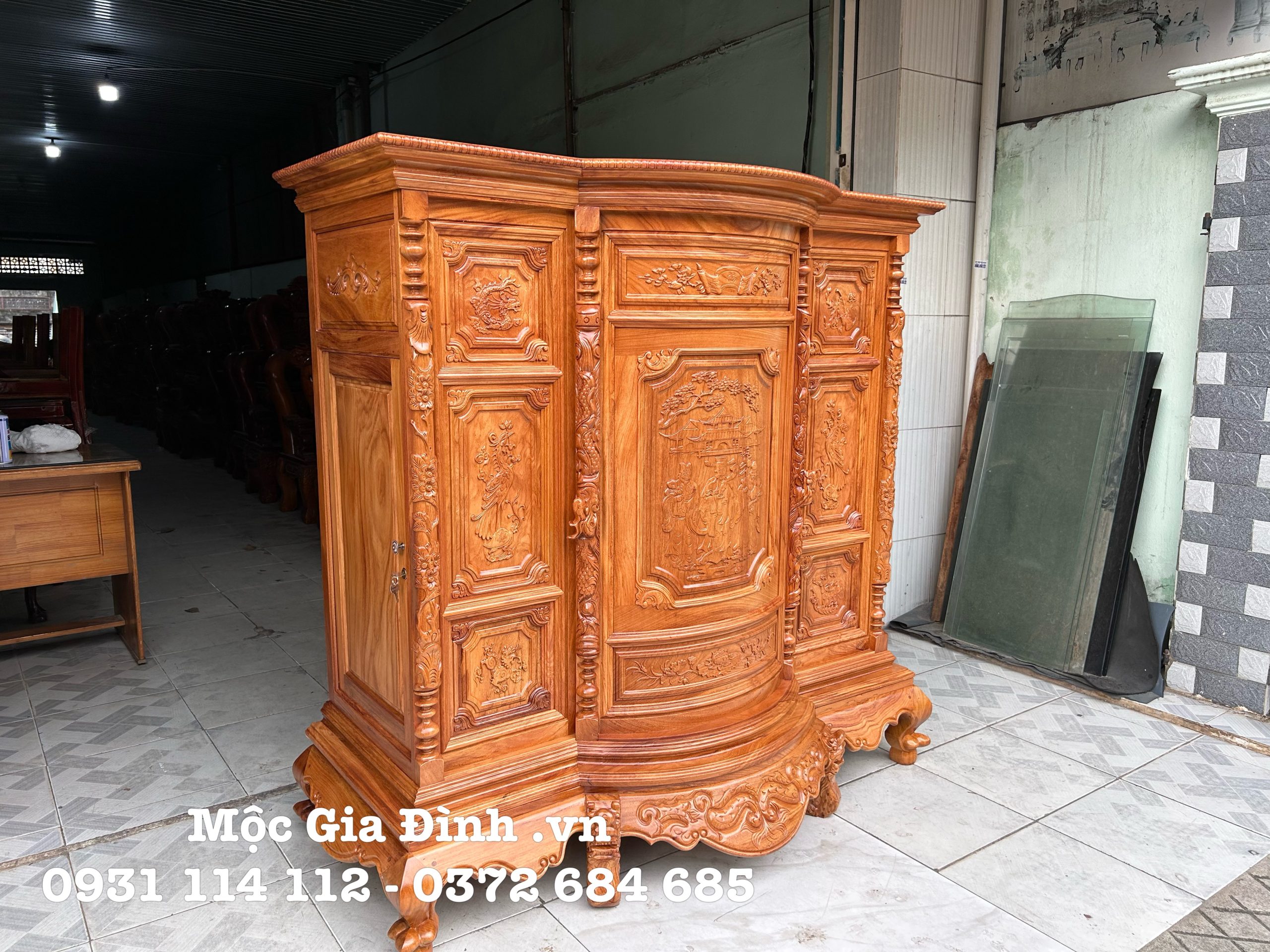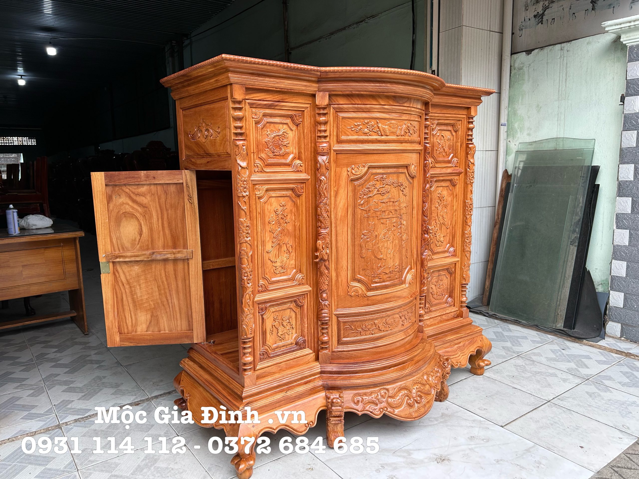 Tủ thờ Bụng Phệ Chạm Tam Đa Gõ Đỏ Toàn Bộ