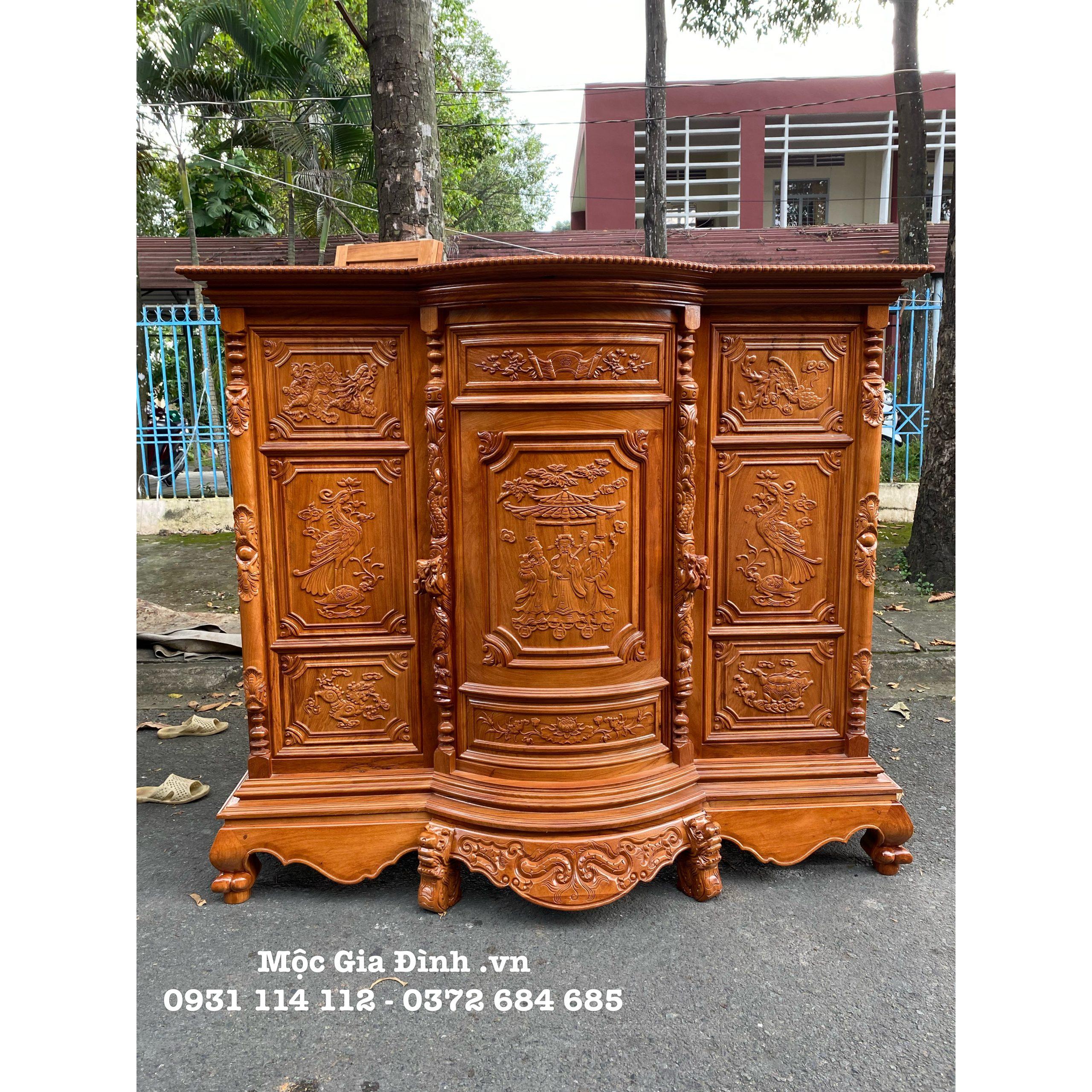 Tủ thờ gỗ Gõ chạm Tam Đa